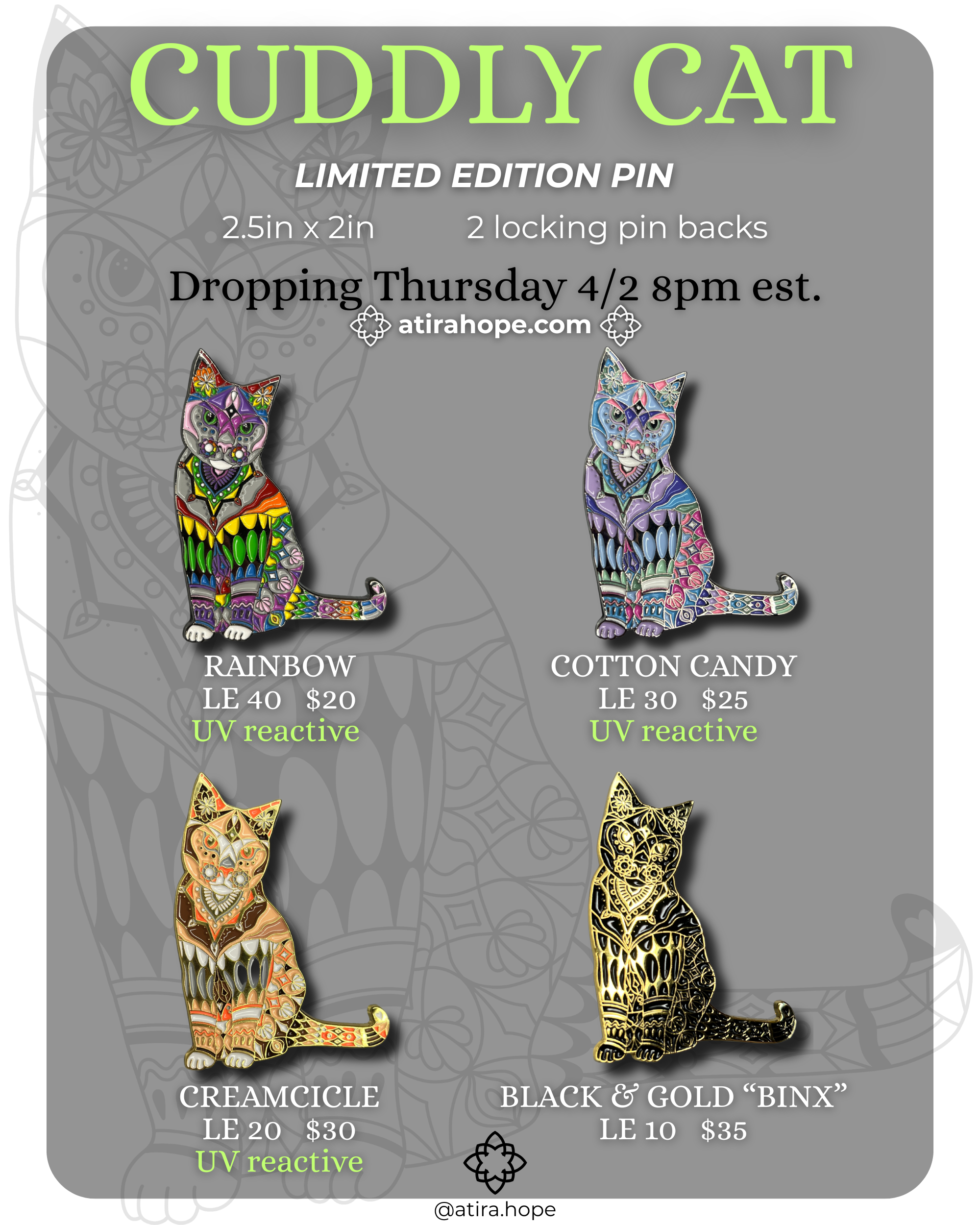 All / PINS PINS Clear All NEW PINS 2026 CALENDARS JOURNALS PENDANTS CANVAS PRINTS PRINTS CLOTHING ORIGINALS STICKERS COLORING PAGES GIFT CARDS BUNDLES TATTOOS ORNAMENTS TIP JAR Filters Categories All NEW PINS 2026 CALENDARS JOURNALS PENDANTS CANVAS PRINTS PRINTS CLOTHING ORIGINALS STICKERS COLORING PAGES GIFT CARDS BUNDLES TATTOOS ORNAMENTS TIP JAR Filter Clear Filter Cuddly Cat Pins - Limited Edition from $20.00 Select Color Rainbow Cotton Candy Creamsicle Black & Gold Add To Cart Added! No results found No results match your search. Try removing a few filters.